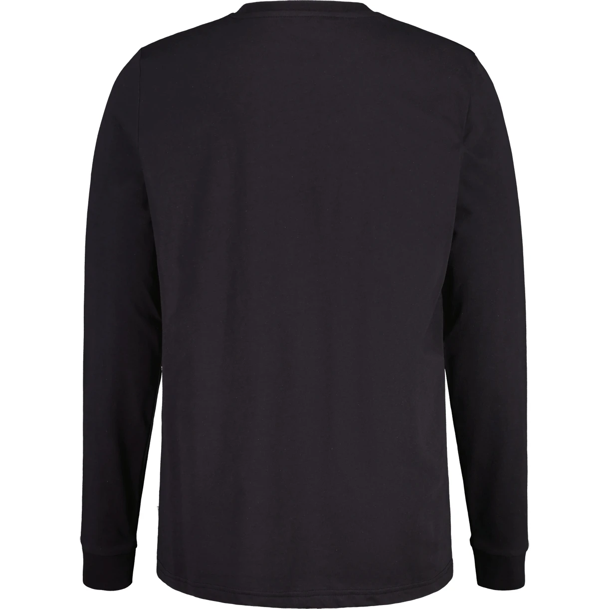 Locker geschnittenes Longsleeve aus fair und biologisch hergestellter Baumwolle, online trackbar nach bioRe-Standard. Rippbündchen an der Ärmeln, etwas längerer Rücken, aufgesetzte Brusttasche mit kleinem Maloja Berg-Print.