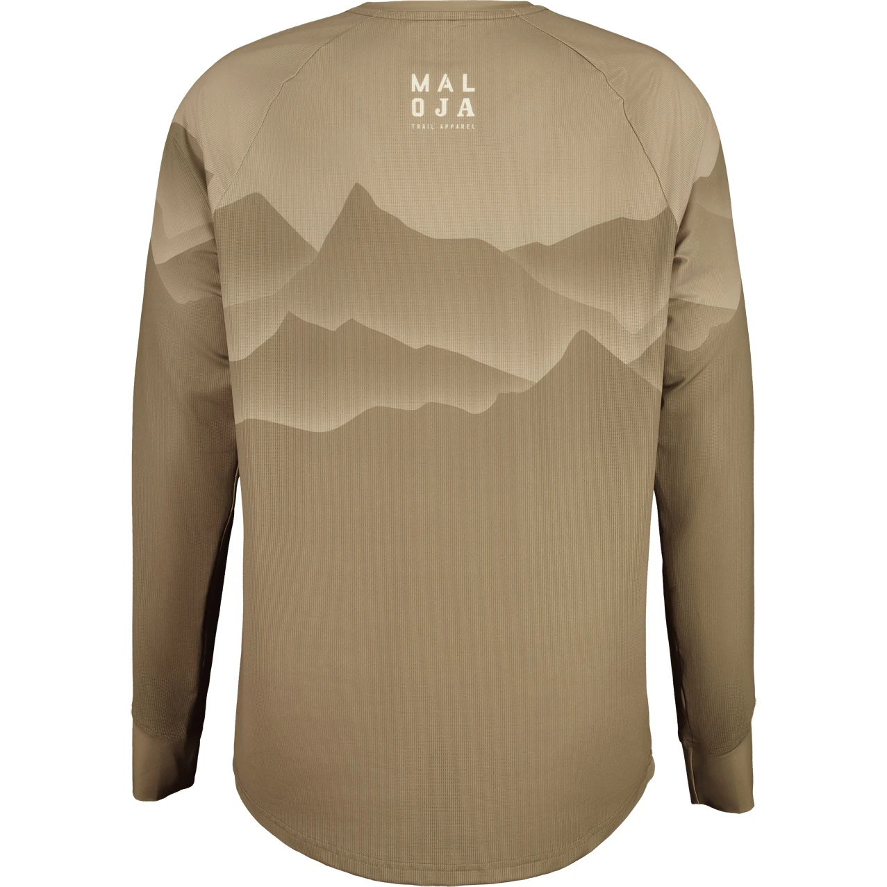 Der lässige Schnitt und die optimierte Passform erlauben viel Bewegungsfreiheit, das Jersey-Material ist besonders luftdurchlässig und trocknet schnell. Bergsilhouetten-Allover-Print, Maloja-Schriftzüge auf den Unterarmen, Mountain People-Patch auf der Brust.