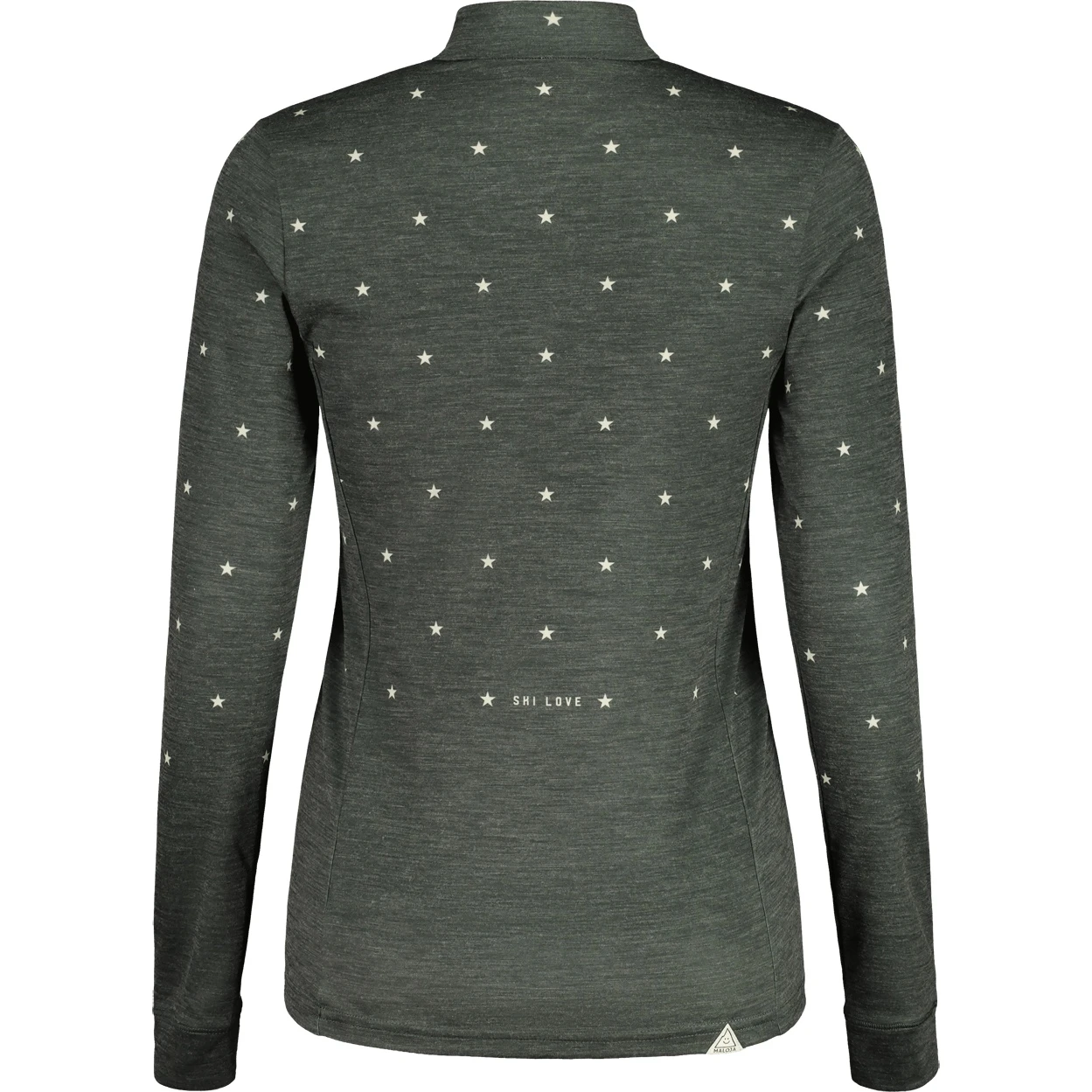 Das elastische, schnell trocknende Thermopile Merino-Material ist die ideale Zwischenschicht für alle Outdoor-Abenteuer. Grafischer Maloja-Schriftzug neben dem Front-Reißverschluss und Happy Mountain-Weblabel.