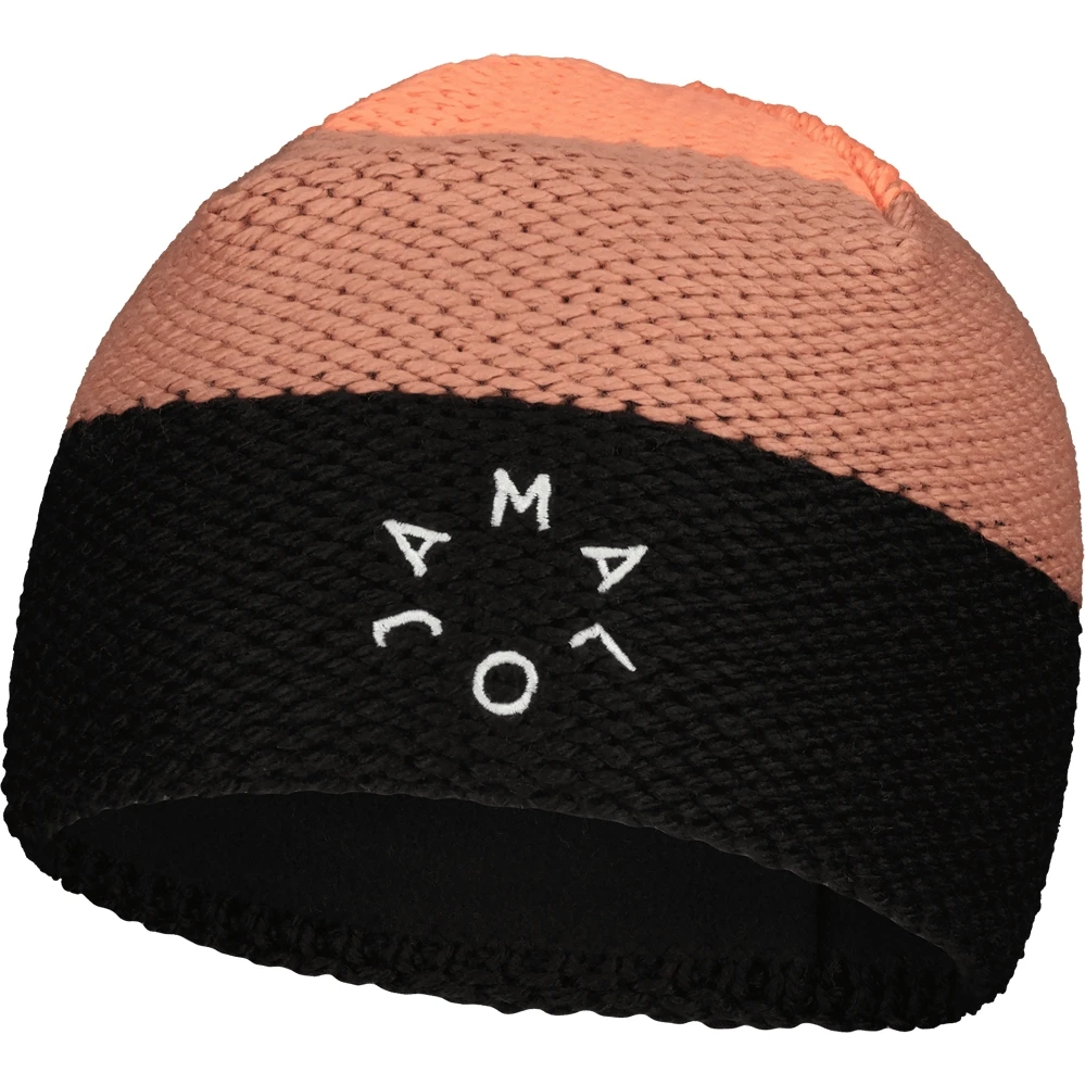 Innen mit Fleece gefütterte Mütze mit groben Strickmuster aus Woll-Mix im coolen Color-Block. Gestickter, runder Maloja-Schriftzug.