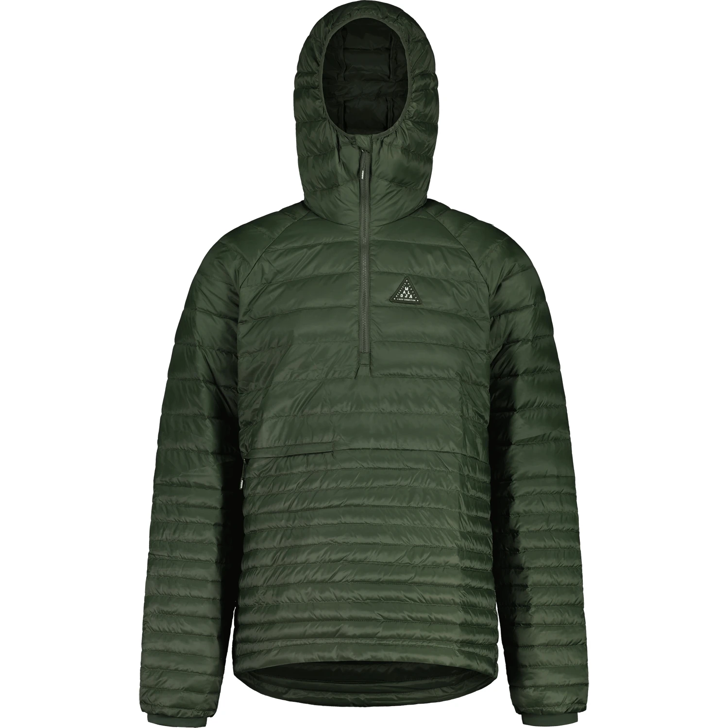 Kapuzenschlupfjacke mit recycelter Daunen-Füllung, gezippter Frontöffnung, seitlicher Einschlupföffnung in der Seitennaht, kleine Tasche mit verdecktem Zipper. Die Iso-Schicht ist winddicht und in der Tasche klein packbar, funktioniert daher solo oder als zweiter Layer unter einer Shell – als sportlicher Begleiter in der Stadt oder leichter Begleiter für Tour und Outdoor.