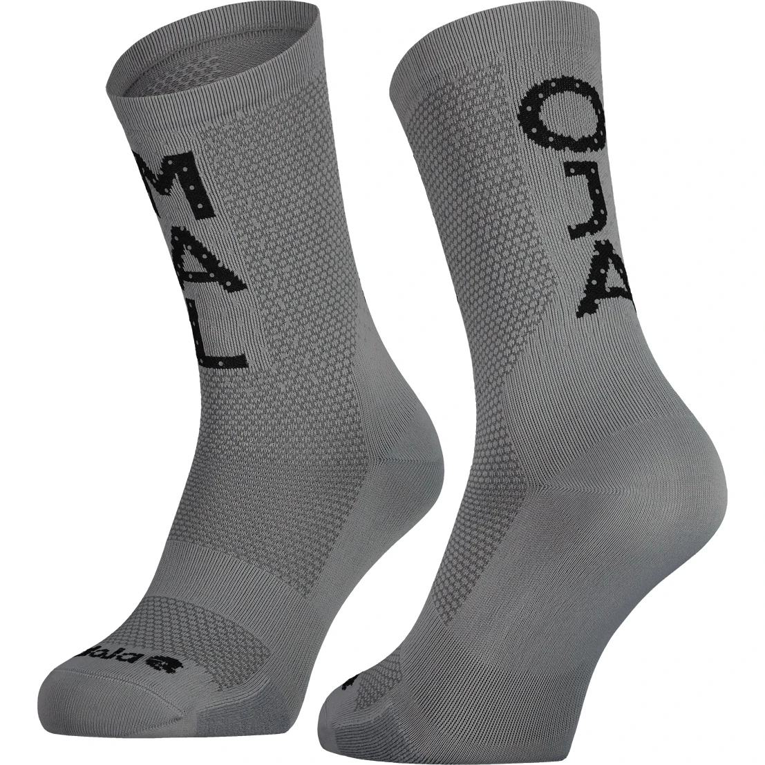 Schnelltrocknende Sportsocken in moderner Länge mit geteiltem Maloja-Schriftzug und reflektierenden Dots.