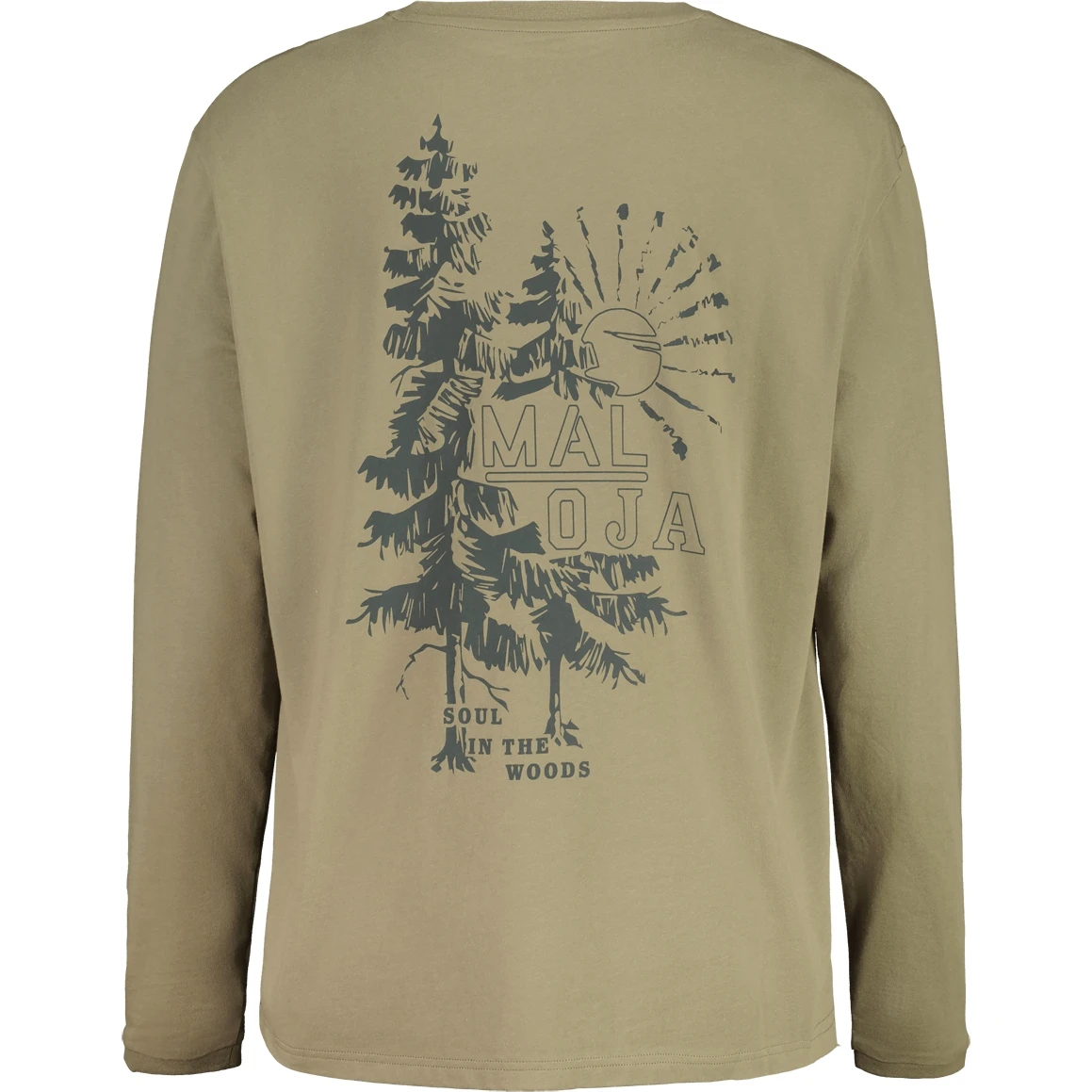 Locker geschnittenes Longsleeve aus fair und biologisch hergestellter Baumwolle, online trackbar nach bioRe-Standard. Großer Print auf dem Rücken, Maloja-Patch auf der Brust.