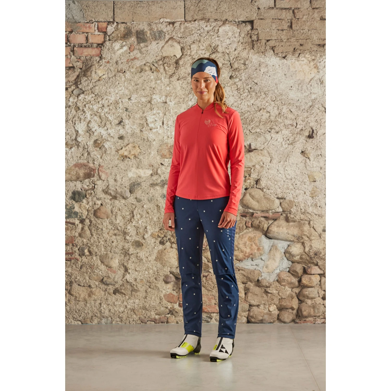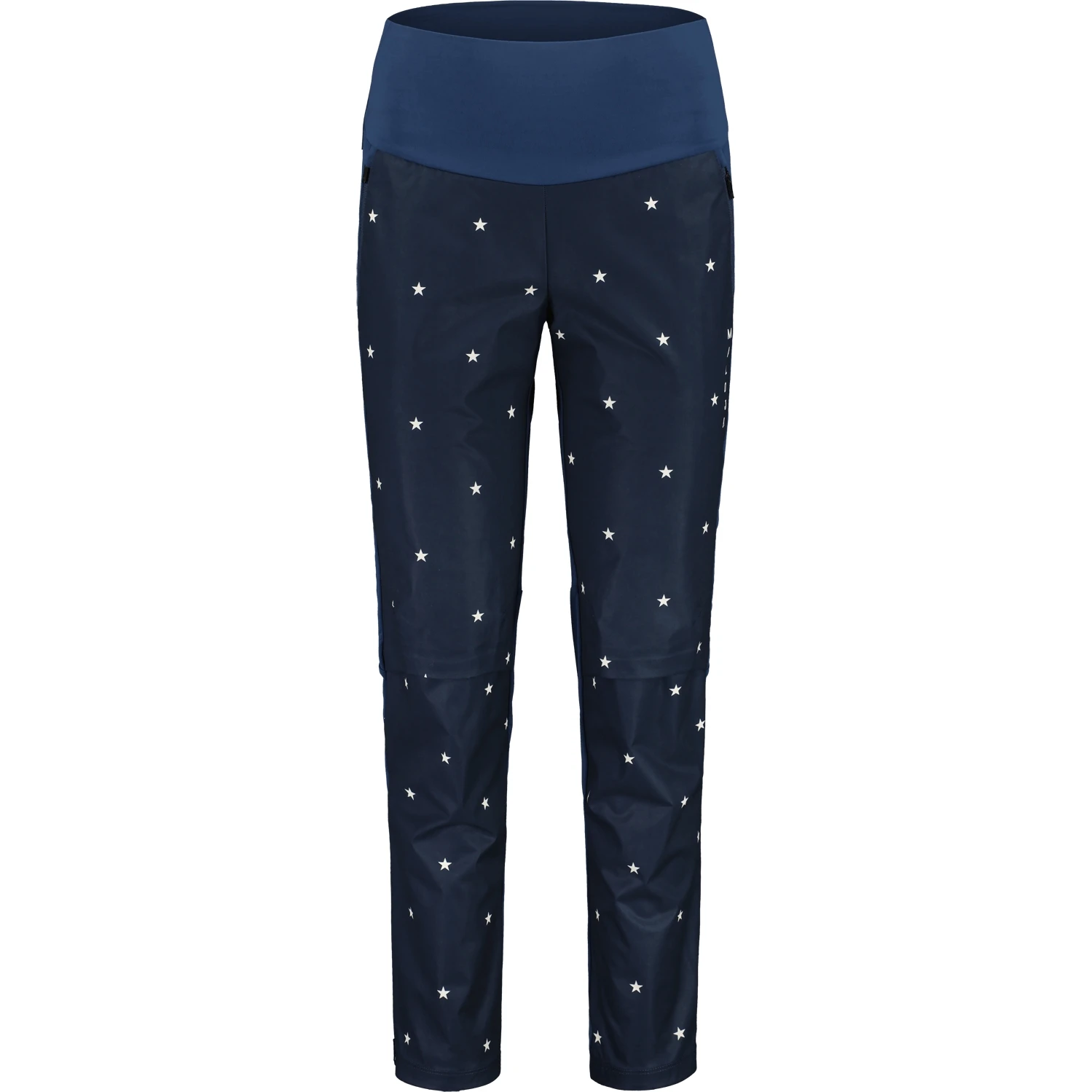 Maloja-Schriftzug über den Po und am linken Oberschenkel, All Over-Prints auf der Vorderseite der Beine.