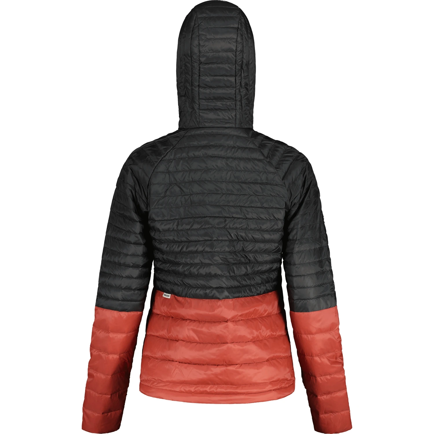 Kapuzenschlupfjacke mit Füllung aus recycelter Daune, gezippter Frontöffnung, seitliche Einschlupföffnung in der Seitennaht, kleine Tasche mit verdecktem Zipper. Die Iso-Schicht ist winddicht und in der Tasche klein packbar, funktioniert daher solo oder als zweiter Layer unter einer Shell – als sportlicher Begleiter in der Stadt oder leichter Begleiter für Tour und Outdoor.